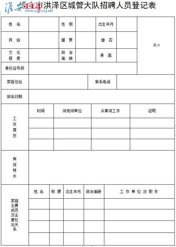 附:洪澤區(qū)城管大隊(duì)招聘人員信息登記表