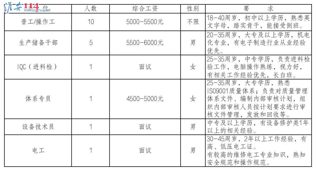 淮安百姓網(wǎng)關鍵詞:捷群電子(淮安)有限公司招聘啟事