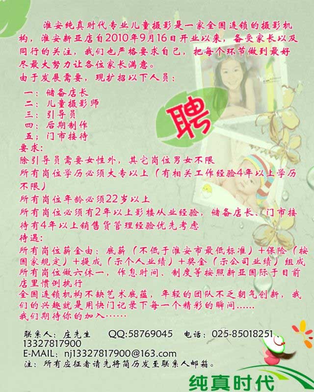 淮安百姓網(wǎng)關(guān)鍵詞:淮安純真時(shí)代專業(yè)兒童攝影招聘